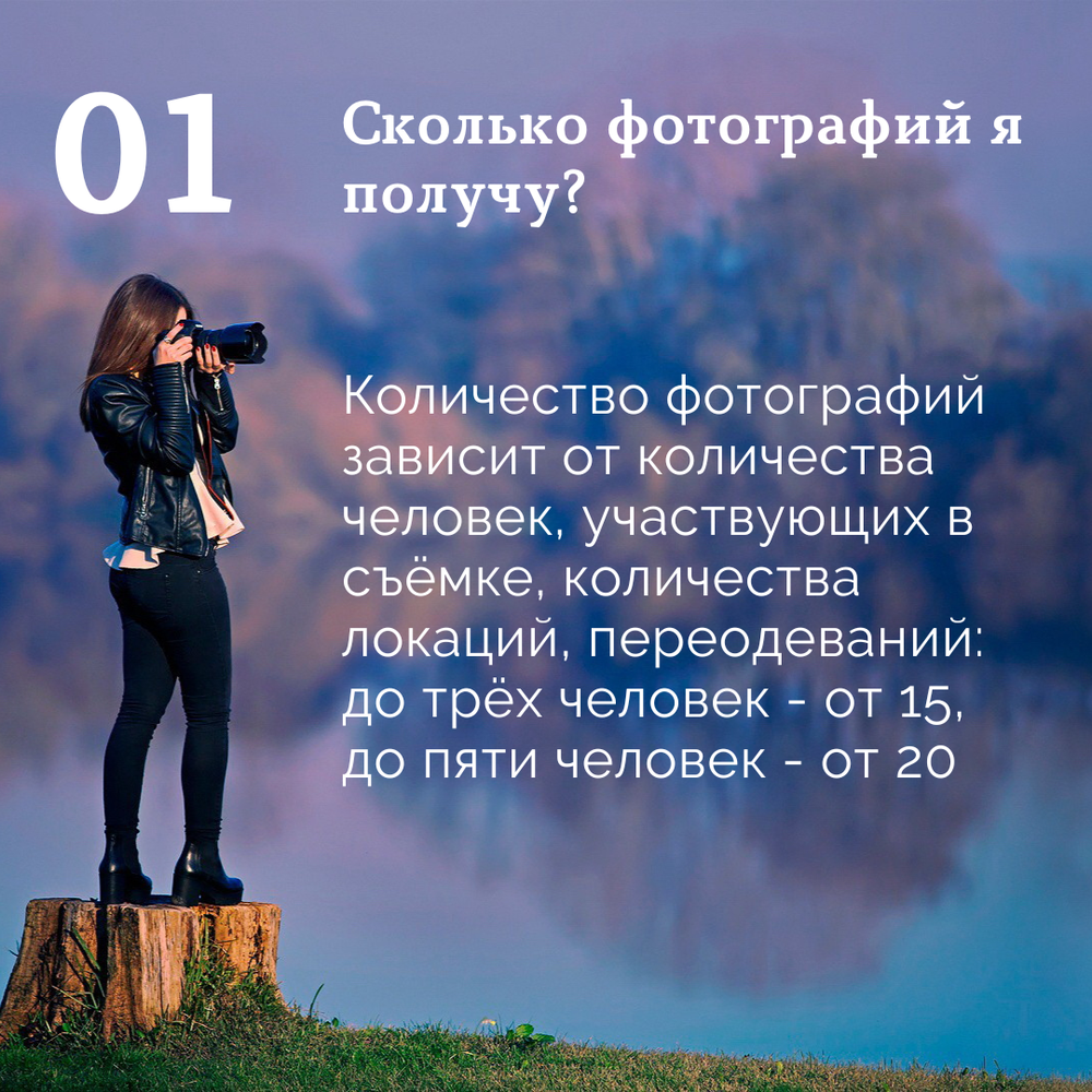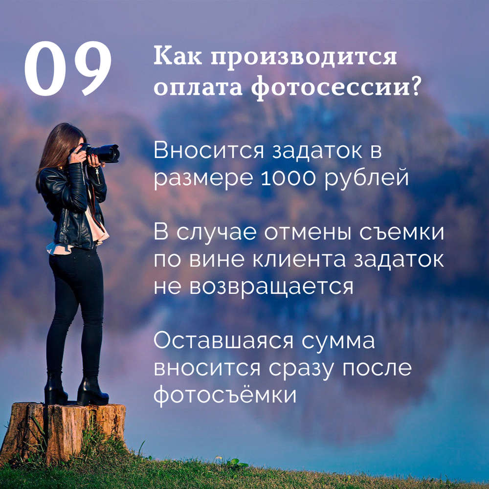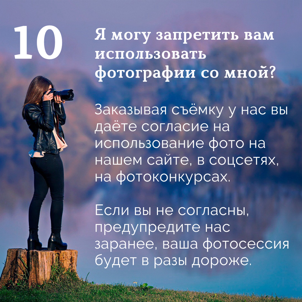 10 карточек - 10 вопросов и ответов о проведении фотосъёмки.